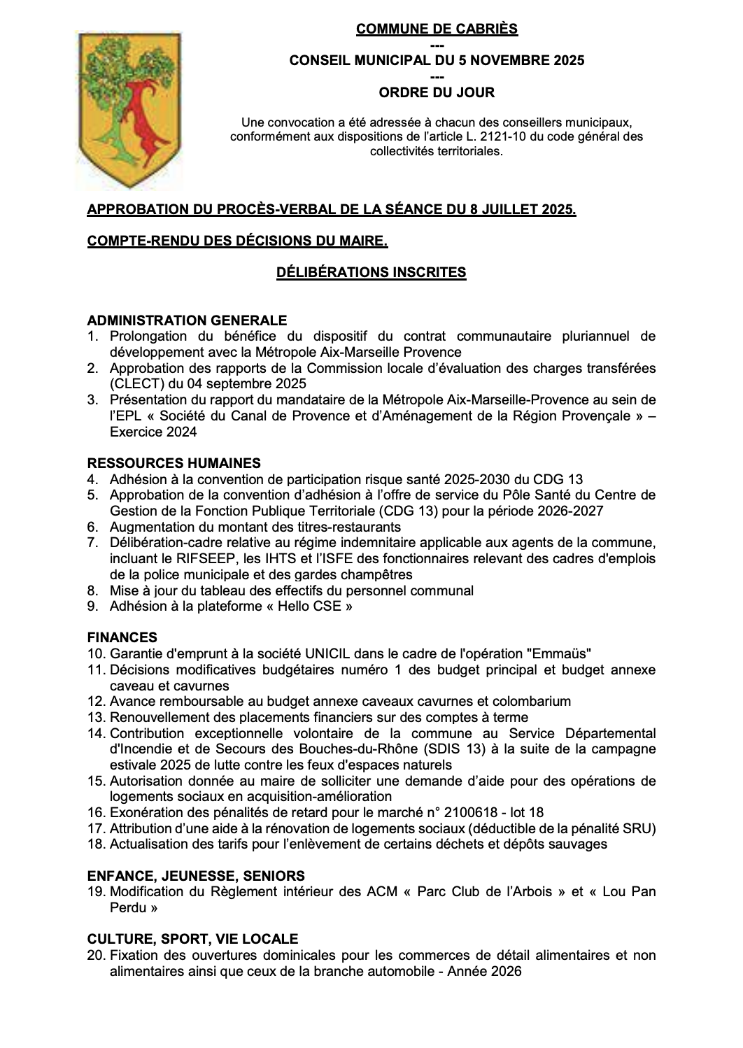 CONSEIL MUNICIPAL MERCREDI 5 NOVEMBRE 2025