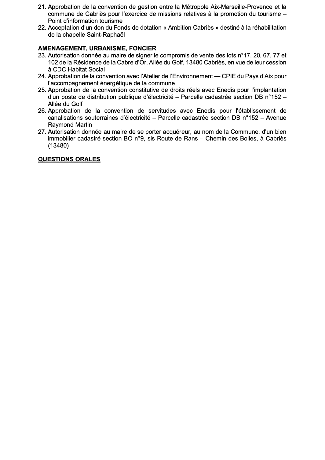 La séance sera diffusée en direct sur notre page Facebook et son compte-rendu sera ensuite mis en ligne sur le site de de la commune http://www.cabries.fr/