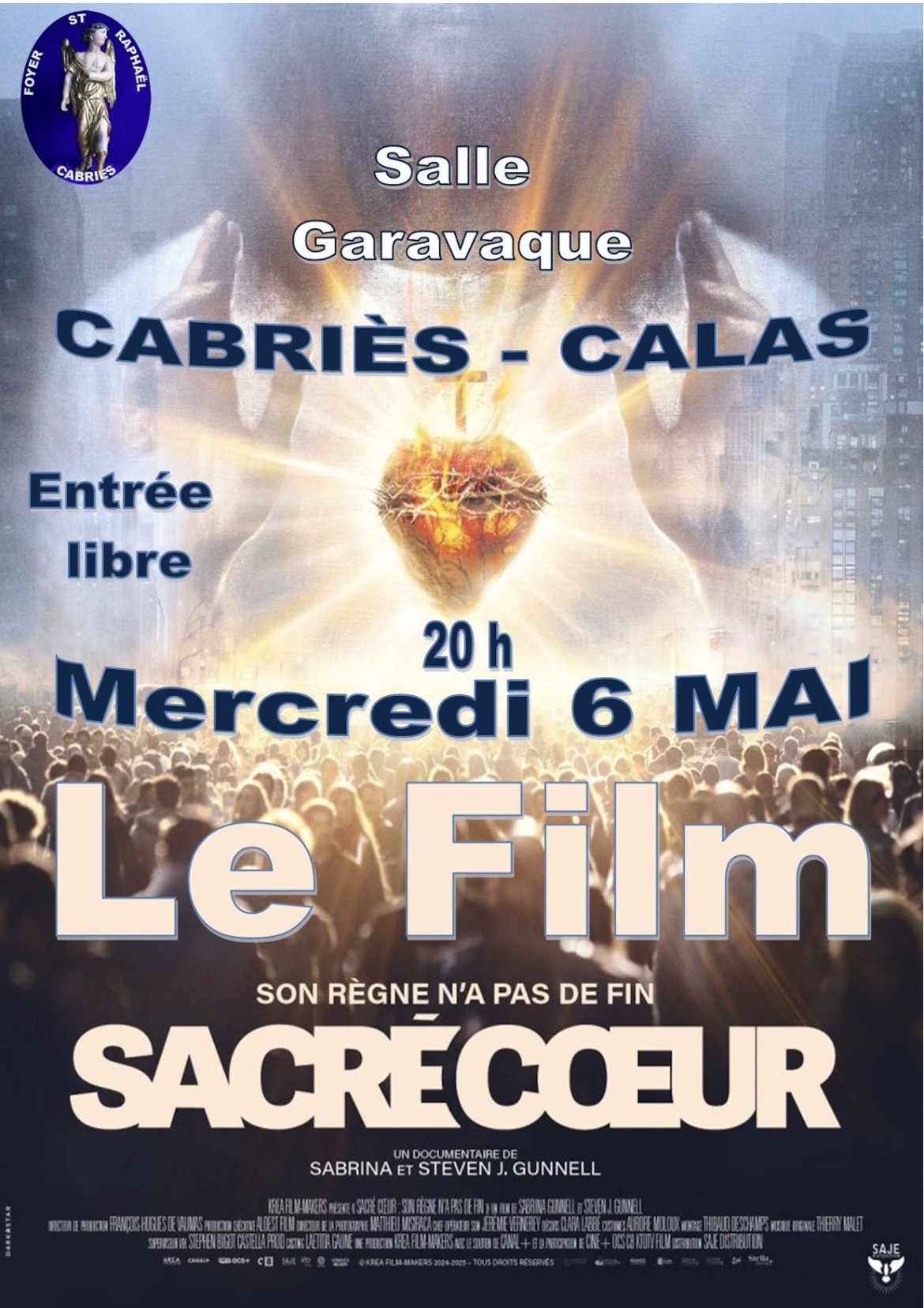 « Tous les Évènements Projection du film « Sacré Coeur » organisée par le Foyer Saint Raphaël mercredi 6 mai 2026 20 h 00 min - 22 h 00 min CEST « Les Fables de Fontaine – à partir de 7 ans Conférence : Marseille …. 1794… sans nom par Henri Martino-Gauchi » Le mercredi 6 mai à 20h à la Maison Garavaque + Google Agenda+ Exporter vers iCal Détails Date : mercredi 6 mai 2026 Heure : 20 h 00 min - 22 h 00 min Organisateur Association Foyer Saint Raphaël Lieu Maison Louise Garavaque Maison Louise Garavaque Cabriès, 13480 France + Google Map